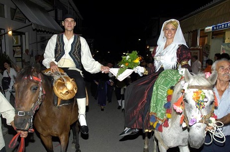 בחודש אוגוסט, תושבי הכפר קאריה – Karia מארגנים חתונות מסורתיות מחודשות, הרצון בשמירה על מנהגים ישנים בשילוב הדור הצעיר מרעננים ומיוחדים. תהלוכה צבעונית ברחובות הכפר בליווי שירים, נגינה וזריקת פרחים באוויר מלווה את החתן והכלה הרכובים על חמורים מקושטים. האווירה מיוחדת ושווה כל רגע של צפייה.