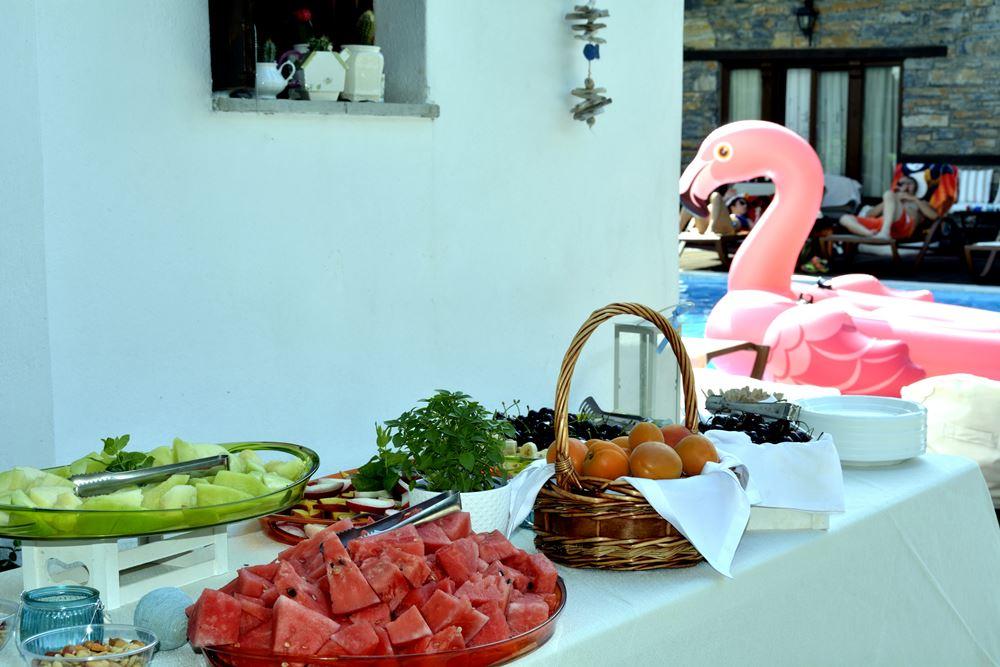 במקום מוגשת ארוחת בוקר יוונית ביתית המבוססת על התזונה הים תיכונית מוגשת מדי יום במזנון עשיר .