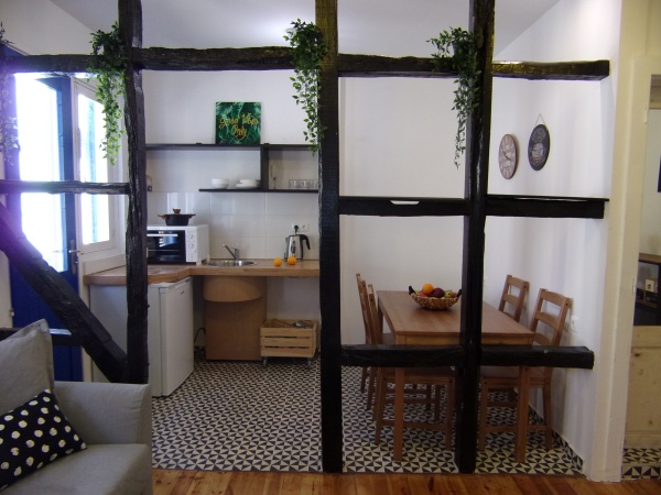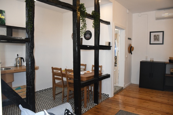 מורכבת מחדר שינה נפרד עם מיטה זוגית מפנקת, סלון עם ספה הנפתחת למיטה זוגית, חדר רחצה עם שירותים, מטבח מאובזר עם תנור, כיריים חשמליות, מקרר, כלי מטבח, פינת אוכל ומרפסת המשקיפה לרחוב.