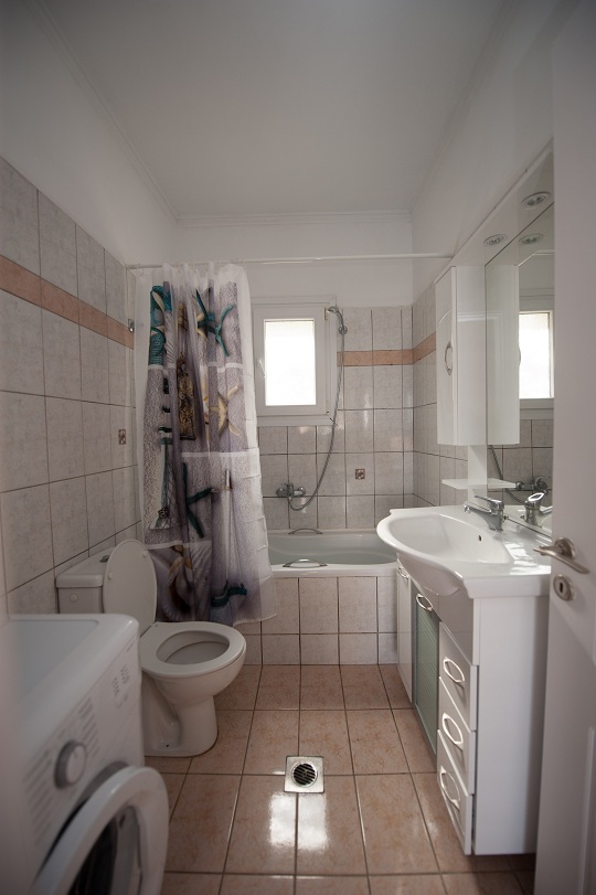 Bathroom: bathtub, washing machine
