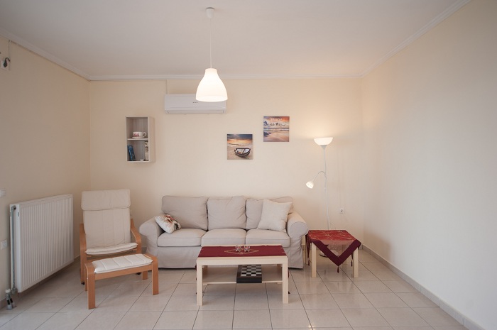 Living room: sofa and armchair, air conditioner