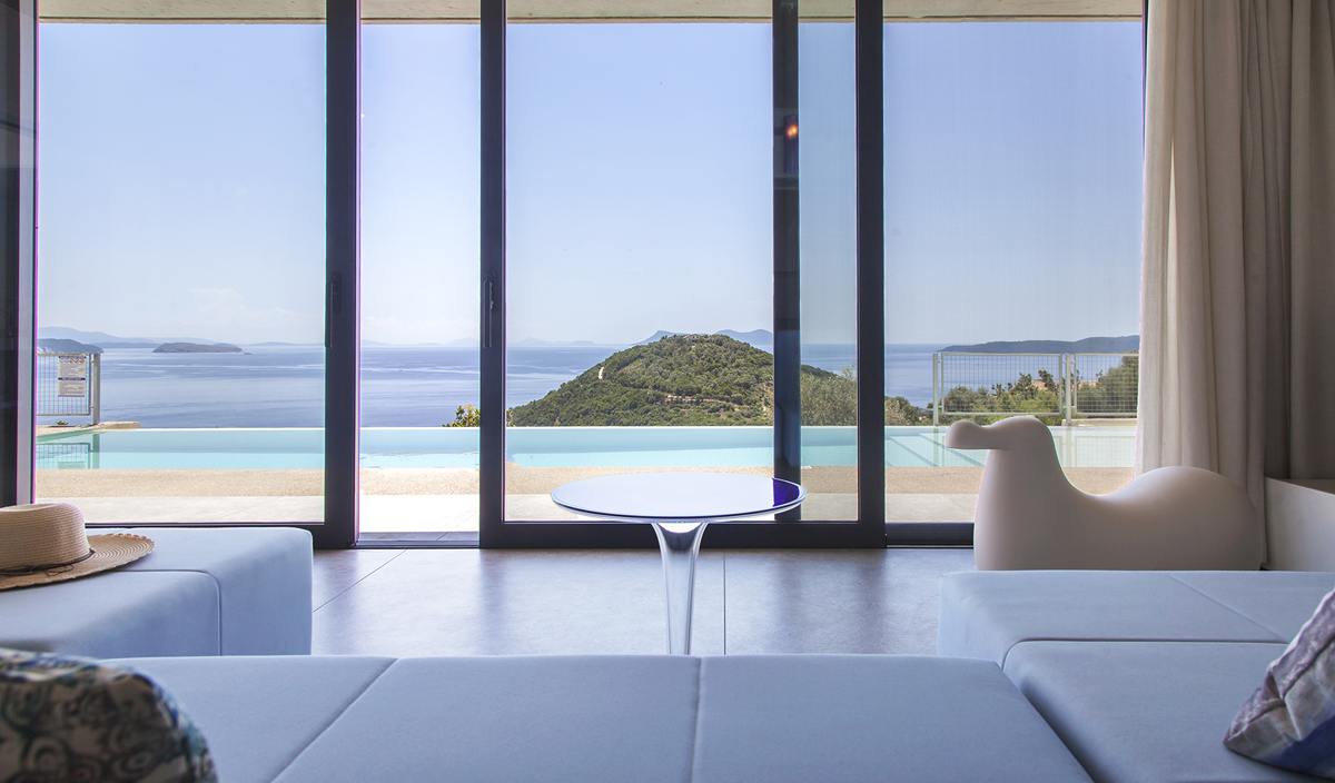 Modern cave-style Greek villa with breathtaking sea views, located in Sivota Bay on the island of Lefkada.