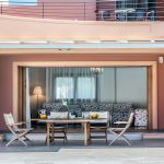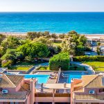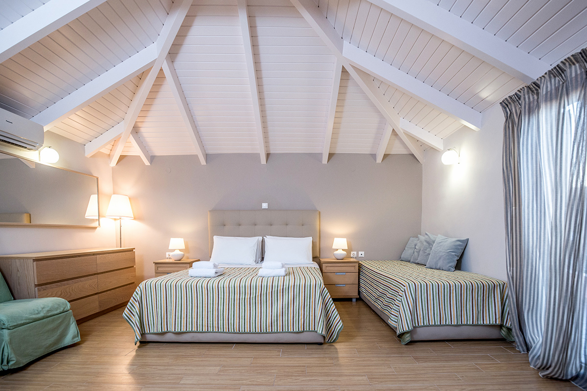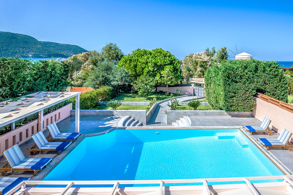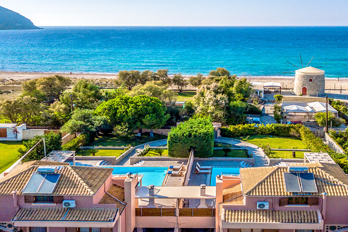 וילות חוף מושלמות ממוקמת במרחק צעדים ספורים מהחוף עם טחנות רוח בנויות אבן לאורך קו החוף ב אגיוס יואניס Agios Ioannis בלפקדה Lefkada.