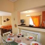 Inside a villa you will find 3 bedrooms, 3 private bathrooms in each room, each room contains air conditioner, TV, stereo with USB connection, cabinet, library, telephone and DVD connection. In the villa you can enjoy a large and well-equipped living room, a kitchen with all the products, a washing machine, a dishwasher, a large private pool, towels, sitting areas, barbecue, umbrellas, sun beds, sun loungers and parking.