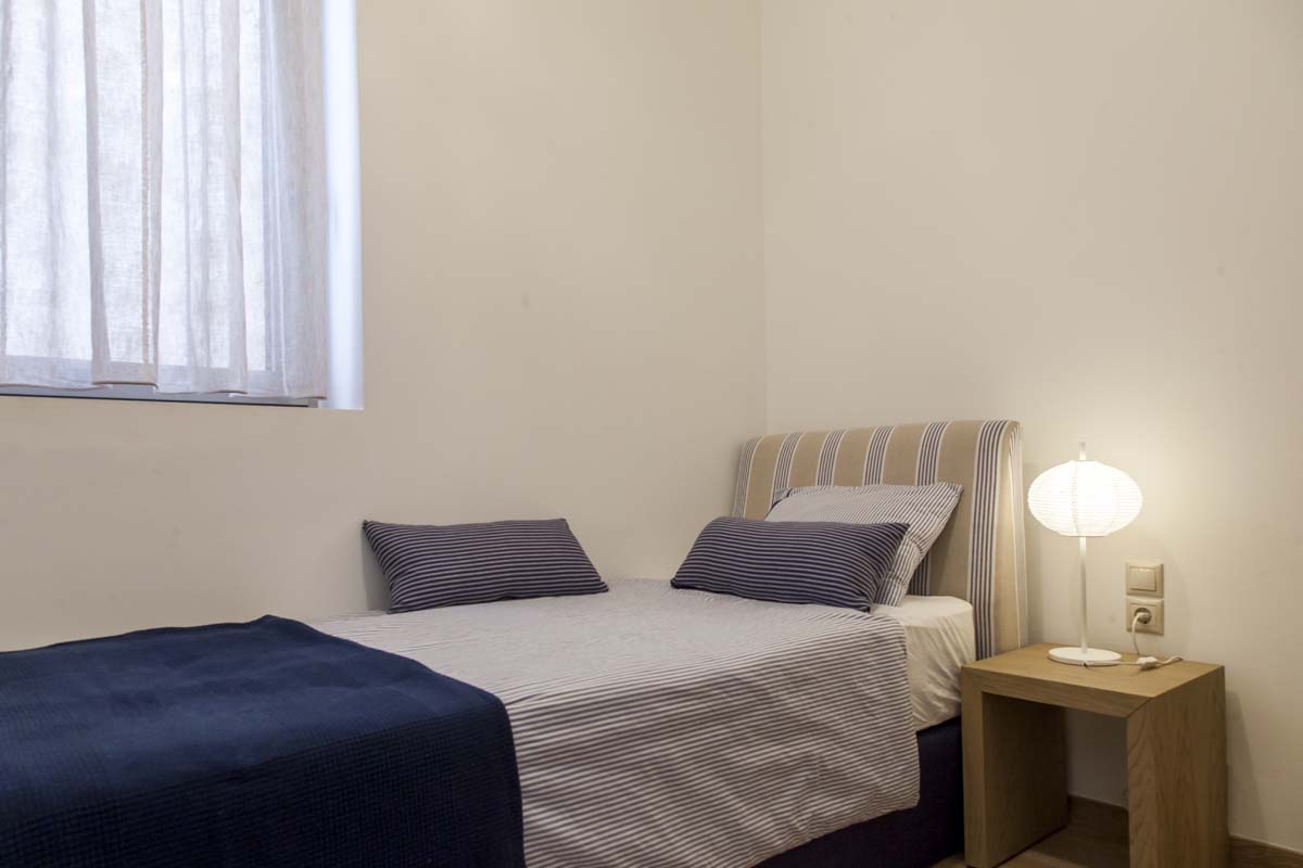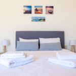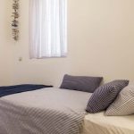 bedroom with one single bed. And services. On the top floor you will be greeted by 2 additional bedrooms – one with a large double bed which can also be used as 2 single beds,