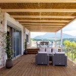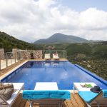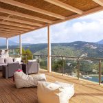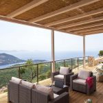 The villa has a huge thin balcony covered with an airy pergola with seating areas and a dining table suitable for 8 guests, a large swimming pool with 2 sunbeds, an outdoor kitchenette with a bar corner.