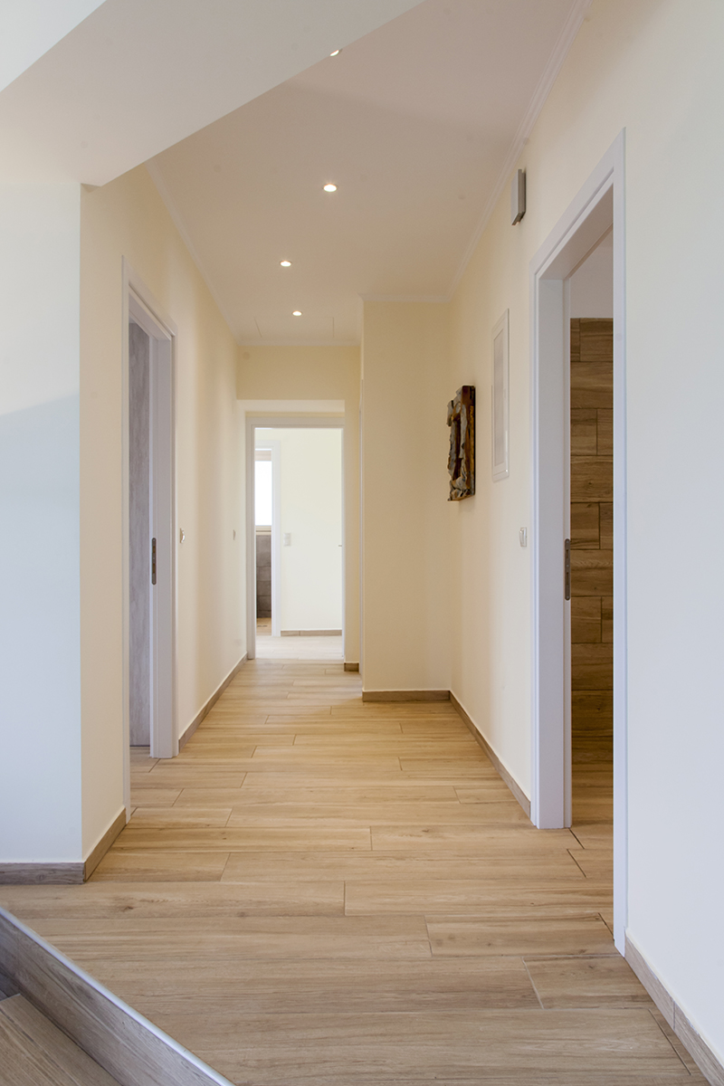מפלס עליון: במעלה מספר מדרגות נמצא אחד מחדרי השינה הכפולים עם חדר הרחצה המשפחתי הכולל מכונת כביסה .