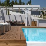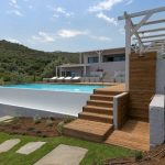 From there there are stairs that lead us to the level near the cool and cool pool with sun loungers and an outdoor shower,