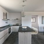 The living room is on the same level, overlooking the wonderful view, the swimming pool and the courtyard through large sliding windows.