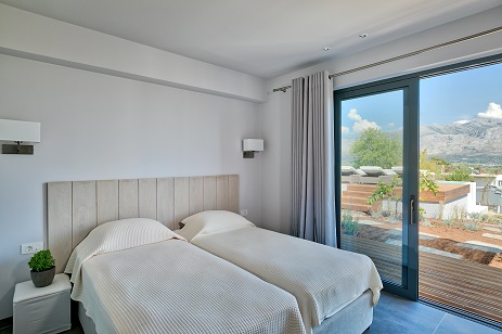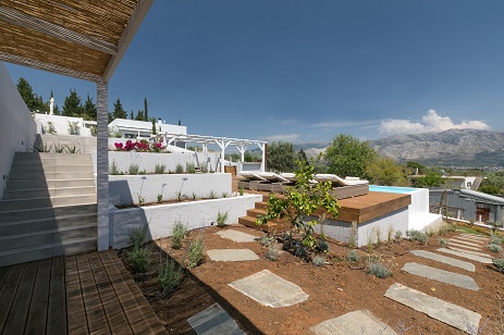 The villa is facing south and enjoys a sunny morning and evening, built on the side of the mountain, surrounded by a green grove and about 800 meters from the beach.