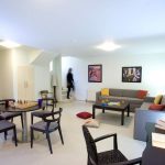 The kitchen is fully equipped and includes a refrigerator, oven, microwave, coffee maker, toaster, dishwasher.