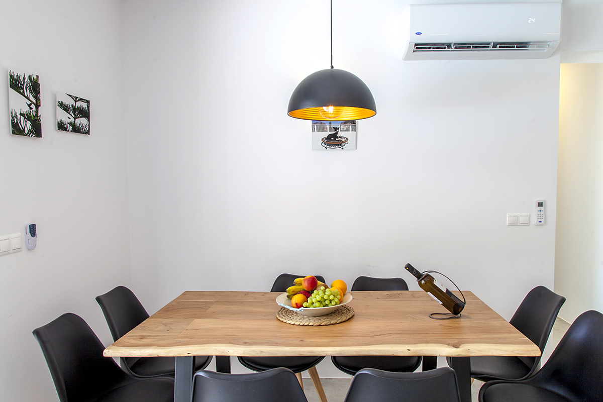 קומת קרקע: חלל אזור מגורים פתוח עם פינת אוכל ,מטבח מאובזר ,