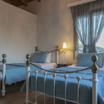 The double bed can be separated into 2 singles. The villa is bright and pleasant – in the villa’s courtyard you can relax on sun loungers or in the shade of the gazebo overlooking the pool and the view of Lefkada and the neighboring islands, dipping in the blue pool while lunch is cooking in the yard at the corner of the bar – where there is also a dining table suitable for 6 guests.