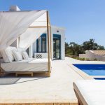 swimming pool, mosquito nets, Jacuzzi, TV and sun beds.