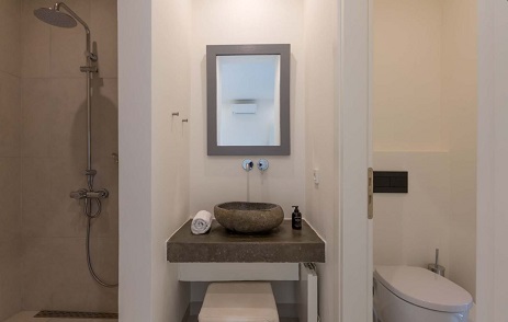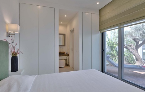 בקומה הראשונה תהנו מ 4 חדרי שינה – 2 חדרי שינה גדולים עם חלונות צרפתיים נפתחים המשקיפים לים עם מיטה זוגית וחדר מקלחת שירותים צמוד בעיצוב מיוחד. החדרים נפתחים אל מרפסת שמש גדולה עם מיטות שיזוף, ספות ישיבה ושולחן. מצידם השני נכנס ל 2 חדרי שינה נוספים עם חלונות צרפתיים המשקיפים ונפתחים לחצר פטיו. כל חדר מאובזר במיטה זוגית וחדר מקלחת ושירותים צמוד ומפנק בעיצוב מיוחד.