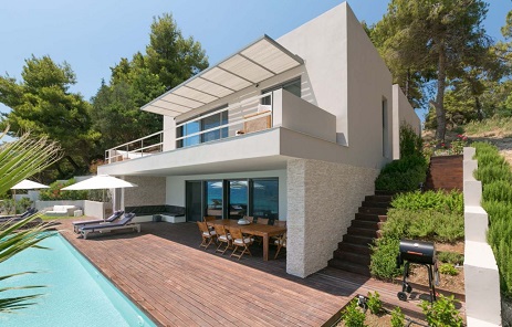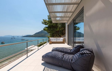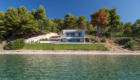 הוילה בנוייה במקום ייחודי על החוף, עם נוף עוצר נשימה הסובב אותה והמשקיף לים היוני ולאיים של לפקדה, מגניסי, קאלאמוס ואתוקוס וכמובן האי סקורפיוס – המפורסם של אל הספנות היווני אונסיס. המים הצלולים כחולים- טורקיז' והחוף הלבן משלימים חופשה מהנה ומיוחדת לכל הגילאים.