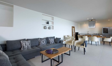 וילה על הים בנוייה באופי "ירוק" עם התאמה לסביבה, בעיצוב יוקרתי ומפנק מוצפת שמש מבוקר עד שקיעה, הגג מקורה בצמחייה ובירידה לוילה גן צמחי תבלין מקבלים את פנינו. כניסה פרטית עם חניה תוביל אותנו לדלת עץ גדולה ומשם לסלון מרווח עם חלונות צרפתיים גדולים עם נוף אל הים והבריכה. בסלון המפנק ספה גדולה, כסאות, מסך טלוייה שטוח, WI -FI , תחנת עגינה לiPod , מטבח פתוח מאובזר עם מקרר ומשטח עבודה וכיור. אי עבודה/אכילה המצופה גרניט מאובזר בכיריים ותנור מוקף במשטח עץ אלון להשלמת ארוחות מהנות עם כסאות מתאימים.