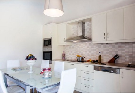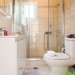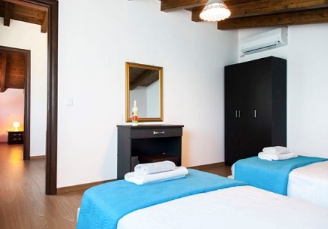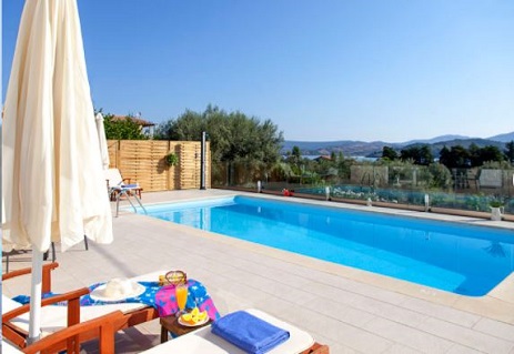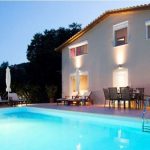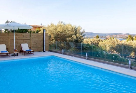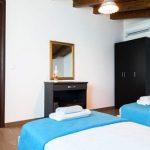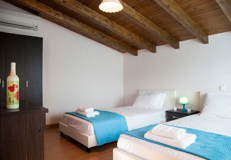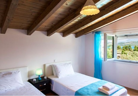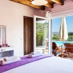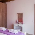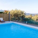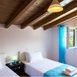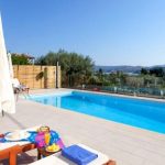 The villa comfortably accommodates up to 8 guests, on the ground floor is a double bedroom which faces the pool with shower and toilet. In addition to the ground floor, a modern and well equipped kitchen with a pleasant dining area next to an inviting living room, which also faces the pool. The sofa in the living room opens to a double bed and can accommodate another couple or 2 children. Wooden stairs lead us to the second floor where there are 2 bedrooms – one with a double bed and the other with 2 single beds which can be pinned to a double bed – the two bedrooms face the pool and the breathtaking view. There is also a bathroom and toilet on the floor.
