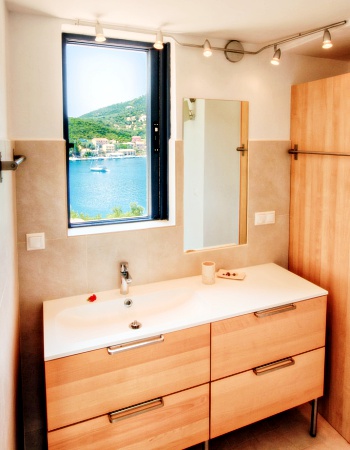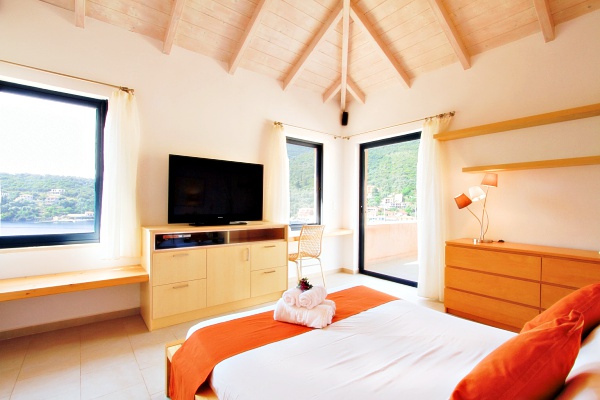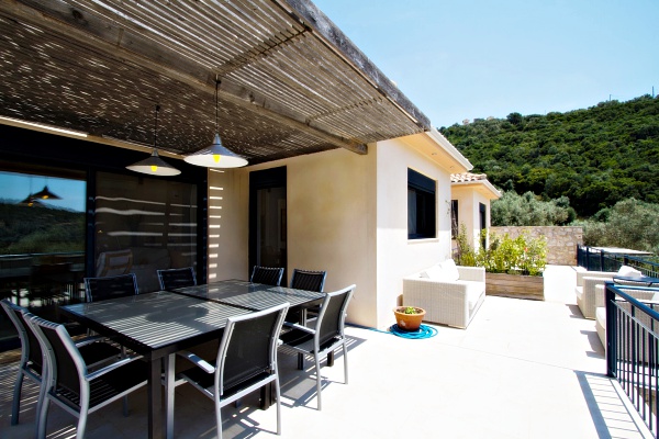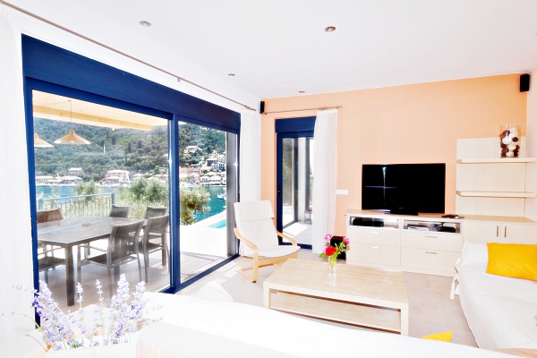 Villa Sivota, with its 220m² is the biggest villa near the Pontoon, and is exceptionally designed and located. Near the beach, the village of Sivota with its shops and taverns is only at 5 minutes away. Ideal for those who are looking for luxury, privacy and comfort of a spacious, fully equipped house. Made with high standards and located in a magnificent place, this villa offers heavenly holidays. Providing last generation technology systems and even its own private cinema makes it one of a kind. Our newly built villa is protected by splendid olive-trees and open to the seas. Built by experience, it has been thought out very carefully to offer comfort, luxury and tranquility. Located 50m from the pontoon, it’s the ideal villa to be rent for boat lovers. Keep your boat in sight or simply enjoy viewing this small harbor becoming alive while boats are sailing in. The villa offers home automation installation and high standard equipment with last-generation LCD TVs, as well as an underground cinema.