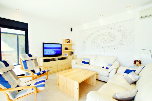 Living Room with 46″ TV and HD Sound System with Sea View.