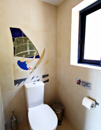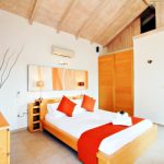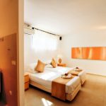 One bedroom with queen size bed, 40″ LCD TV and bathroom with shower. One extra WC. South oriented terrace with sea view.