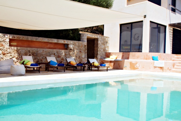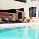 Some step down, is the private swimming pool with overflow (9m x 4m), summer shower and a big terrace to sunbathe. An area with deckchairs, surrounded by vegetation and protected by a stretched canvas, offers a nice view to the little harbor.