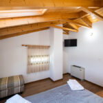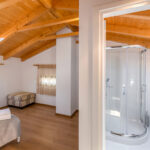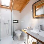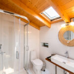 קומה עליונה : בנויה להפליא בסגנון עליית גג עם קורות חשופות ועבודות עץ מדהימות ,2 חדרי שינה זוגיים ו 2 חדרי רחצה משפחתיים עם מקלחת.