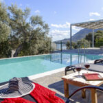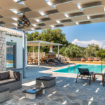 וילה מודרנית חדשה בלפקדה Lefkada שוכנת על הגבעה עם נוף פנורמי עוצר נשימה מעל הים היוני Ionian Sea והאיים שמסביב.