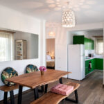 קומת הקרקע: מטבח הפתוח המאובזר במלואו, אזור מגורים, פינת אוכל, 2 חדרי שינה זוגיים, 2 חדרי רחצה משפחתיים עם מקלחת וגישה ישירה לאזור הבריכה הפרטית.