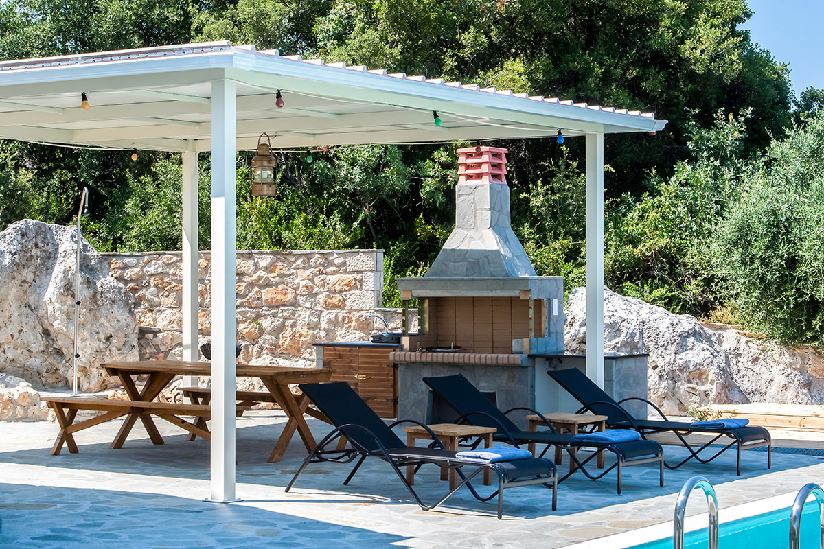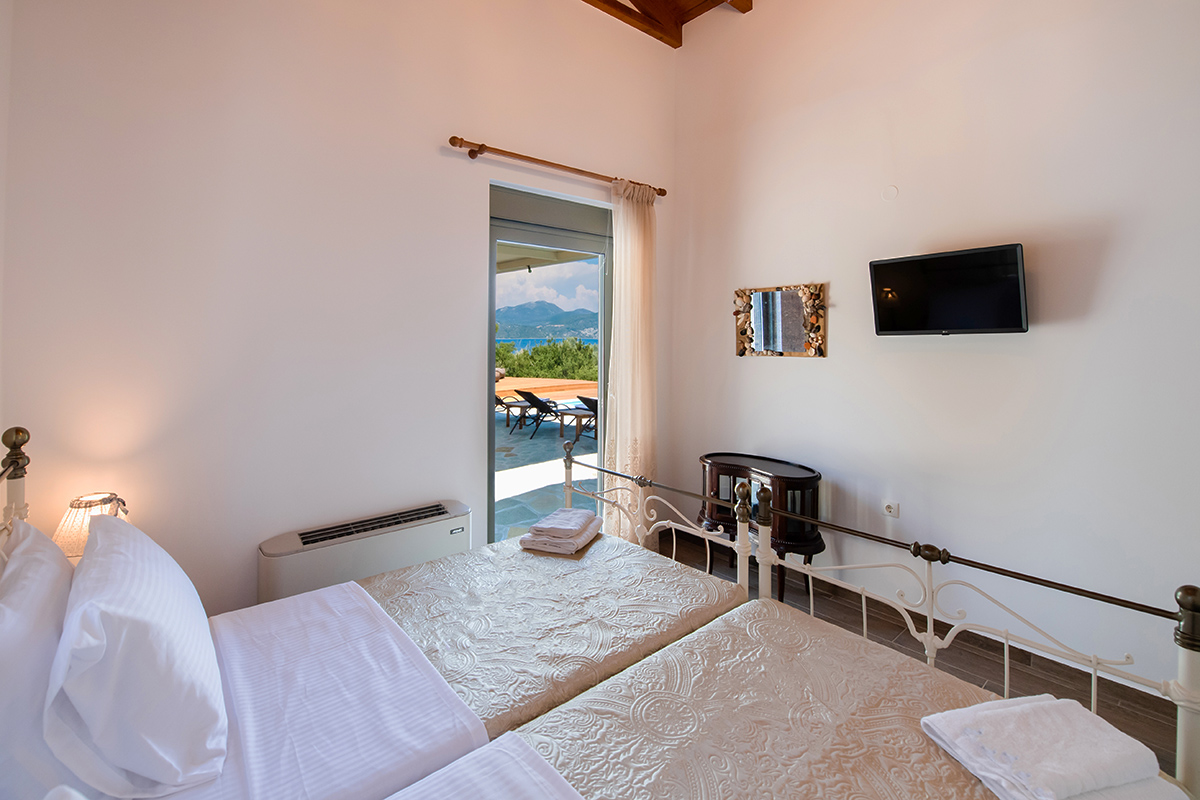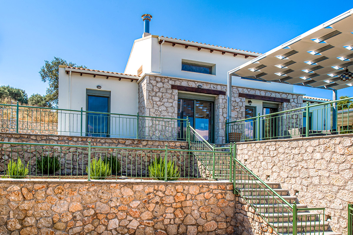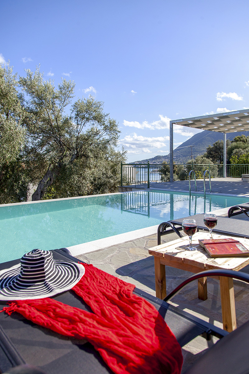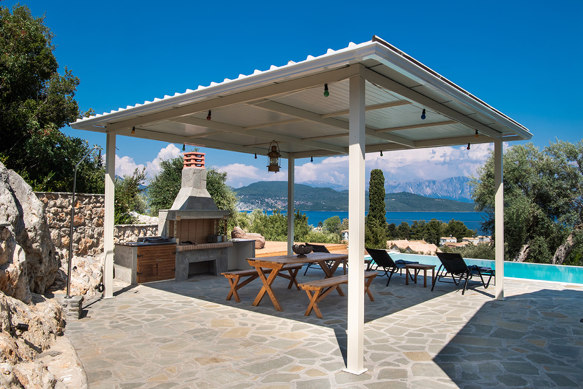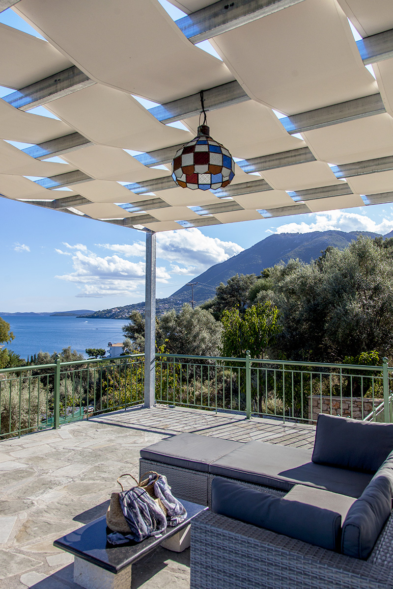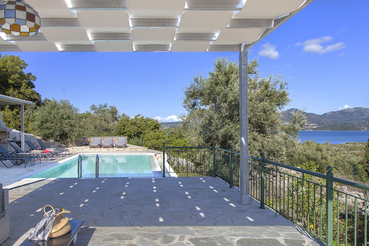 וילה מודרנית חדשה בלפקדה Lefkada שוכנת על הגבעה עם נוף פנורמי עוצר נשימה מעל הים היוני Ionian Sea והאיים שמסביב.