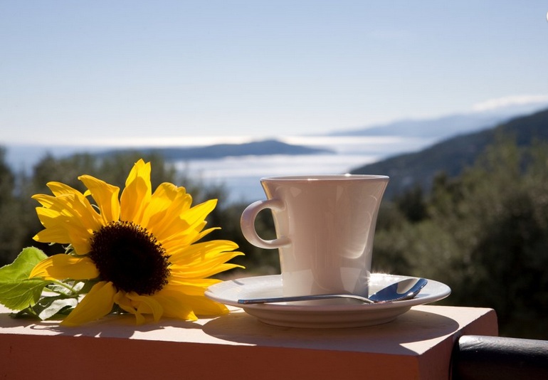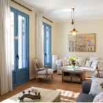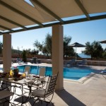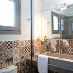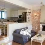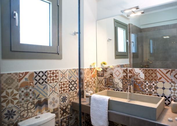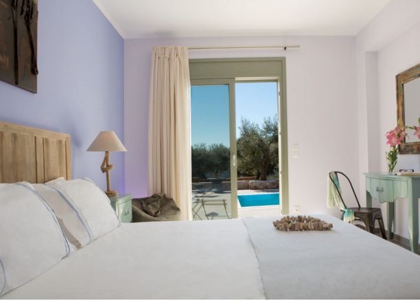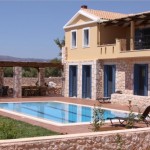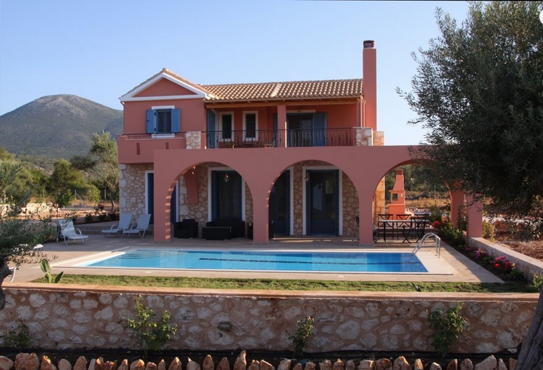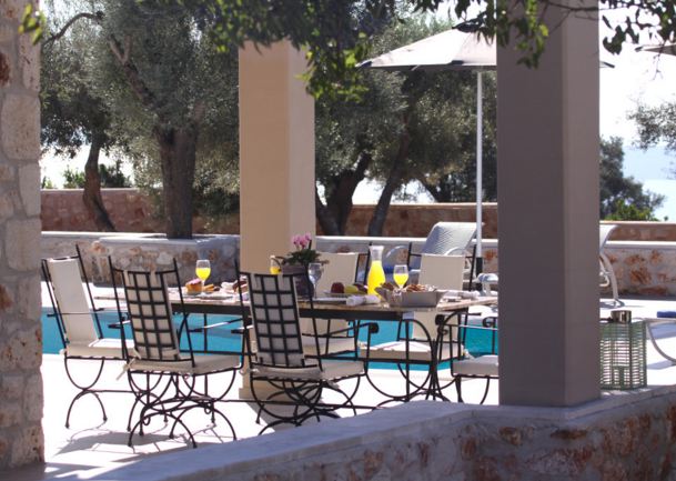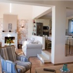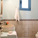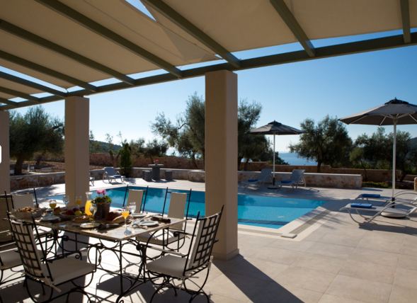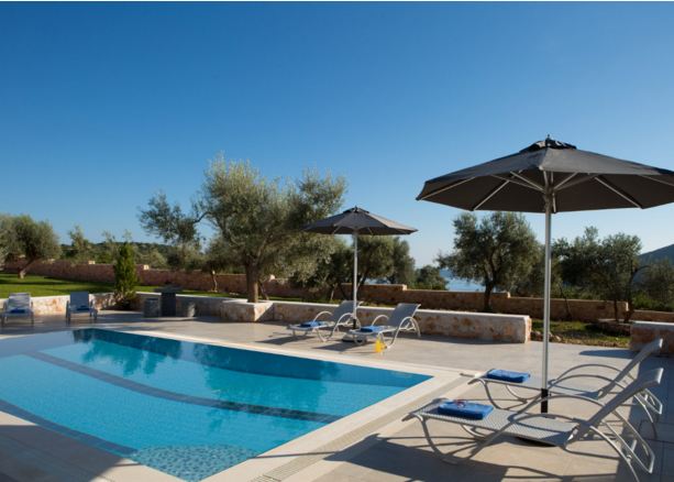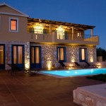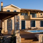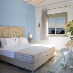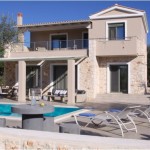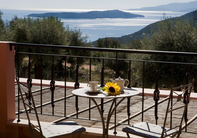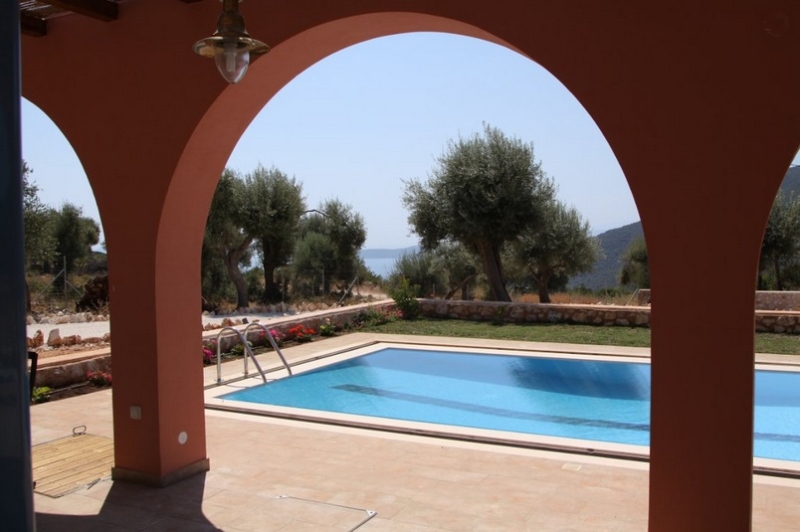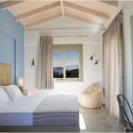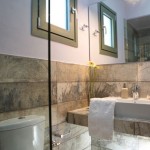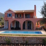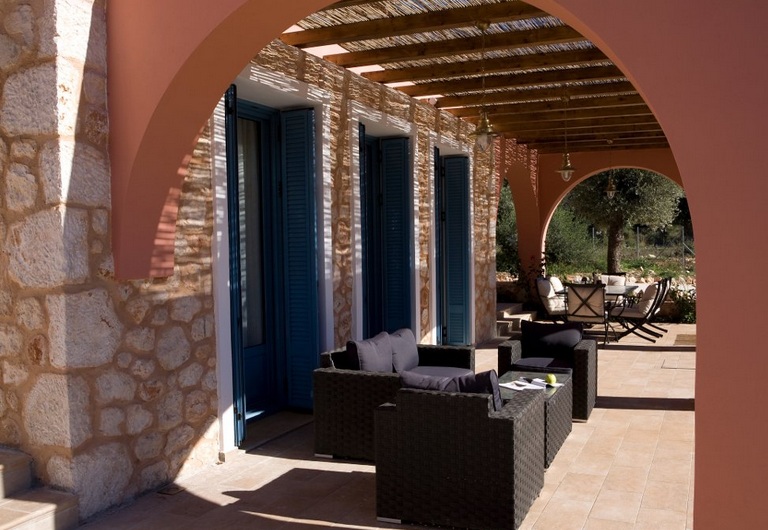 Master bedroom with queen-size bed, en suite bathroom / shower and walk-in wardrobe (twin beds). Third bedroom with queen size bed, Bathroom / shower (with washing machine). All bedrooms have wooden ceiling and are equipped with air conditioning and TV 26 “LED. The bedrooms lead to a 40 m² terrace with a wooden pergola and it faces stunning views of the sea and the Ionian Islands. The third bedroom has its own balcony, which overlooks the lush landscape of Lefkada Island.