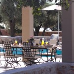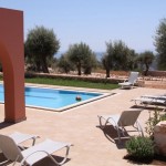 More than 250 square meters paved yard, planted with flowers, plants and green lawn, a pool of 5m x 10.5, surrounded by sunbeds and umbrella, a 50 square foot pergola there is a table for 12 people, Lounge and barbecue.There is parking for 4 cars at the back of the villa, by the access road.