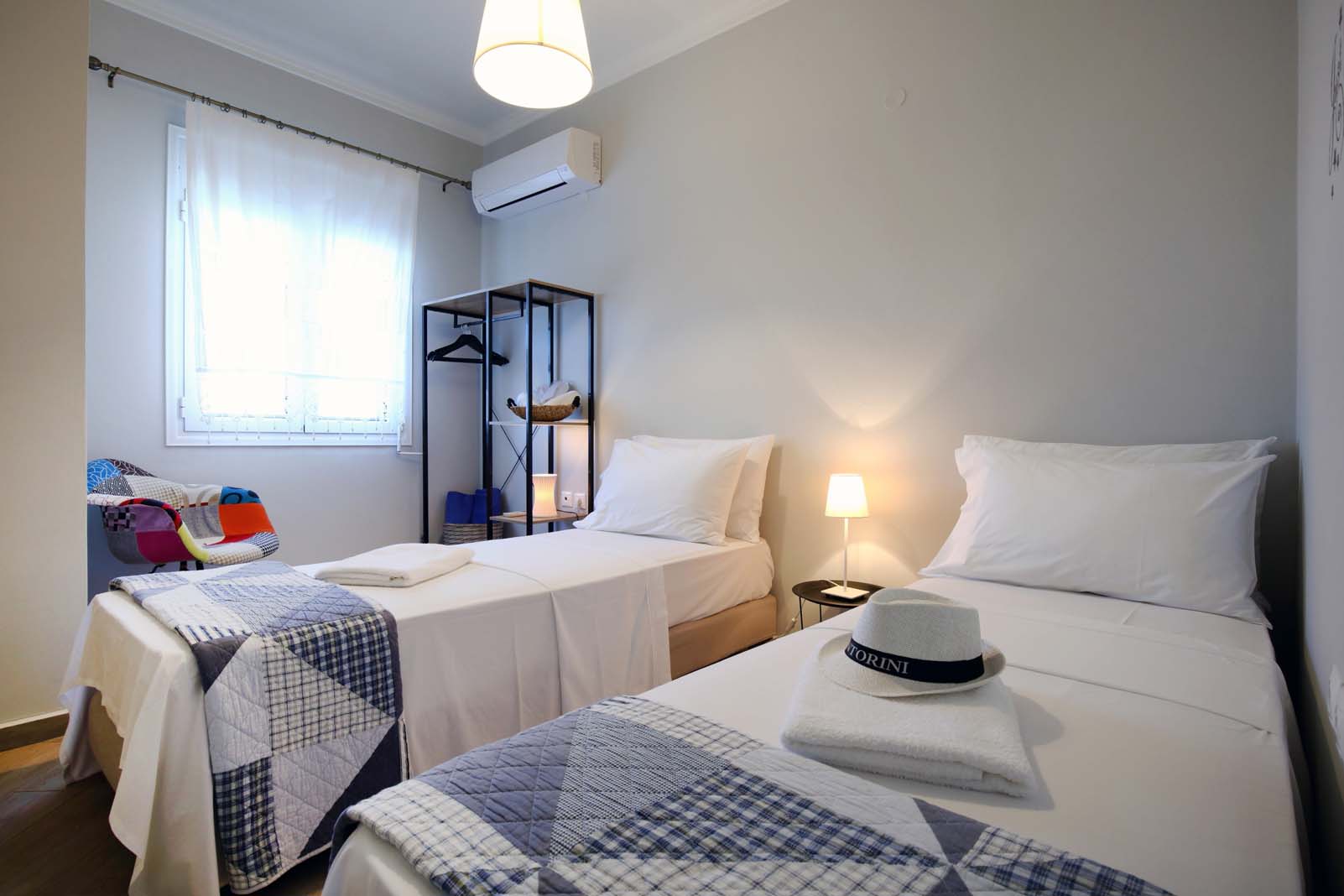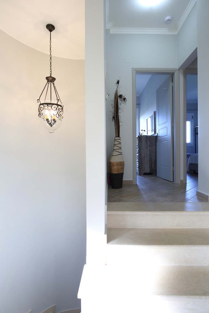 קומה שנייה : 3 חדרי שינה וחדר רחצה (אמבטיה עם אביזרי מקלחת נוספים). חדר השינה הראשי כולל מיטה זוגית, חדר רחצה צמוד משלו ומרפסת עם נוף יפהפה לים היוני. חדר השינה השני עם שתי מיטות יחיד שיכולות להפוך למיטה זוגית, בחדר השינה השלישי יש מיטות קומותיים לשני אנשים נוספים.