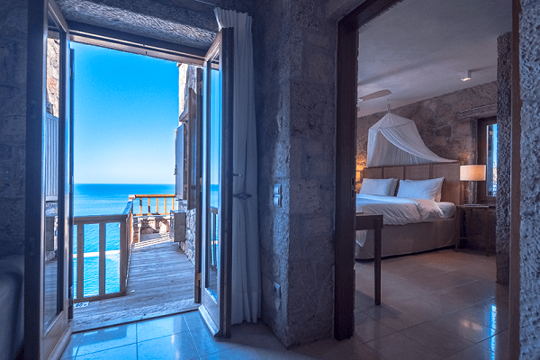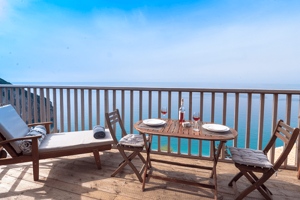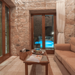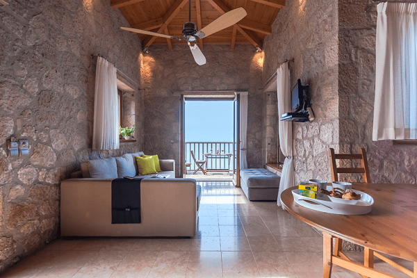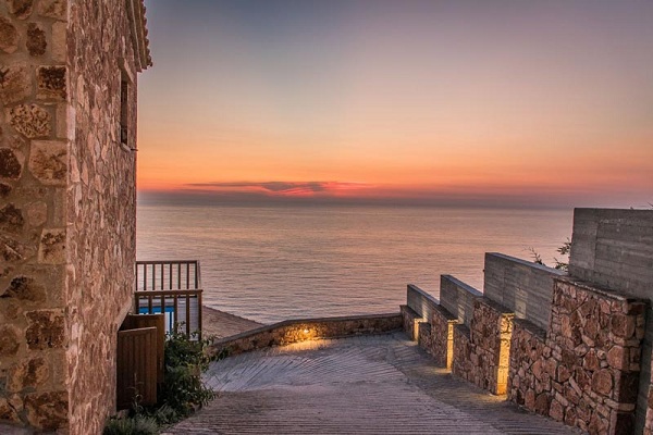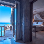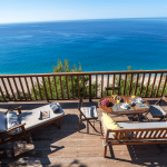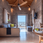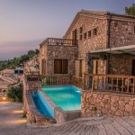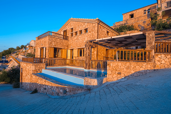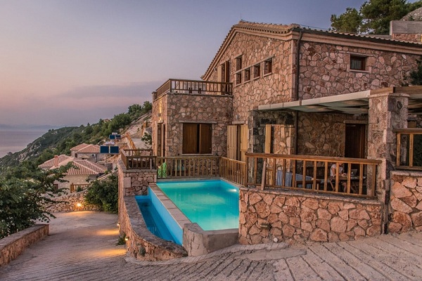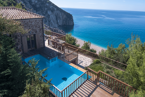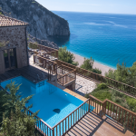 Each villa has a private pool and uninterrupted views of the Ionian Sea, just 100 meters from Mylos Beach.