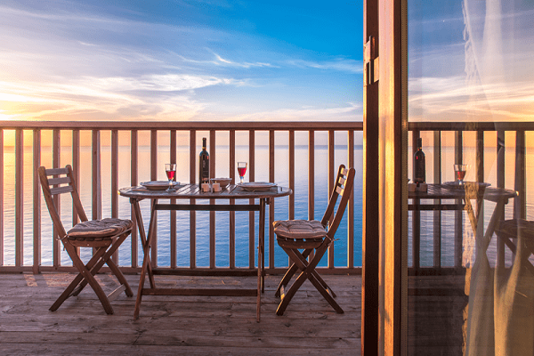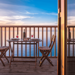 All private pools are surrounded by a thin terrace with sun loungers and parasols, and villas open to furnished balconies overlooking Milos Beach.