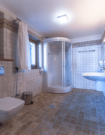 Villas have 2 bedrooms, 2 en suite bathrooms with spa bath or hydromassage shower cabin and high ceiling living room.
