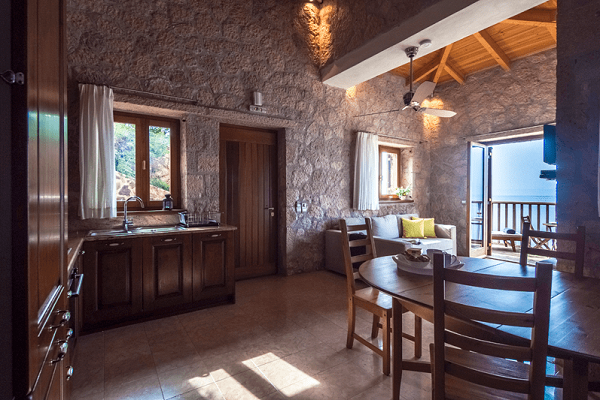 The villas are built in combination with wood and stone while respecting the principles of local architecture, and offer free Wi-Fi.