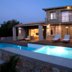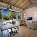 שתי וילות מקסימות הבנויות באבן בלב מטע זיתים, קרוב לחוף החולי של אגיוס יואניס Agios Ioannis.
