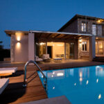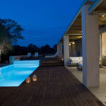 איזור חיצוני: פינת אוכל גדולה, טרקלין ופינות ישיבה, מנגל מובנה, בריכת אינסוף 45 מ"ר ומוקפת במרפסת שמש מעץ.
