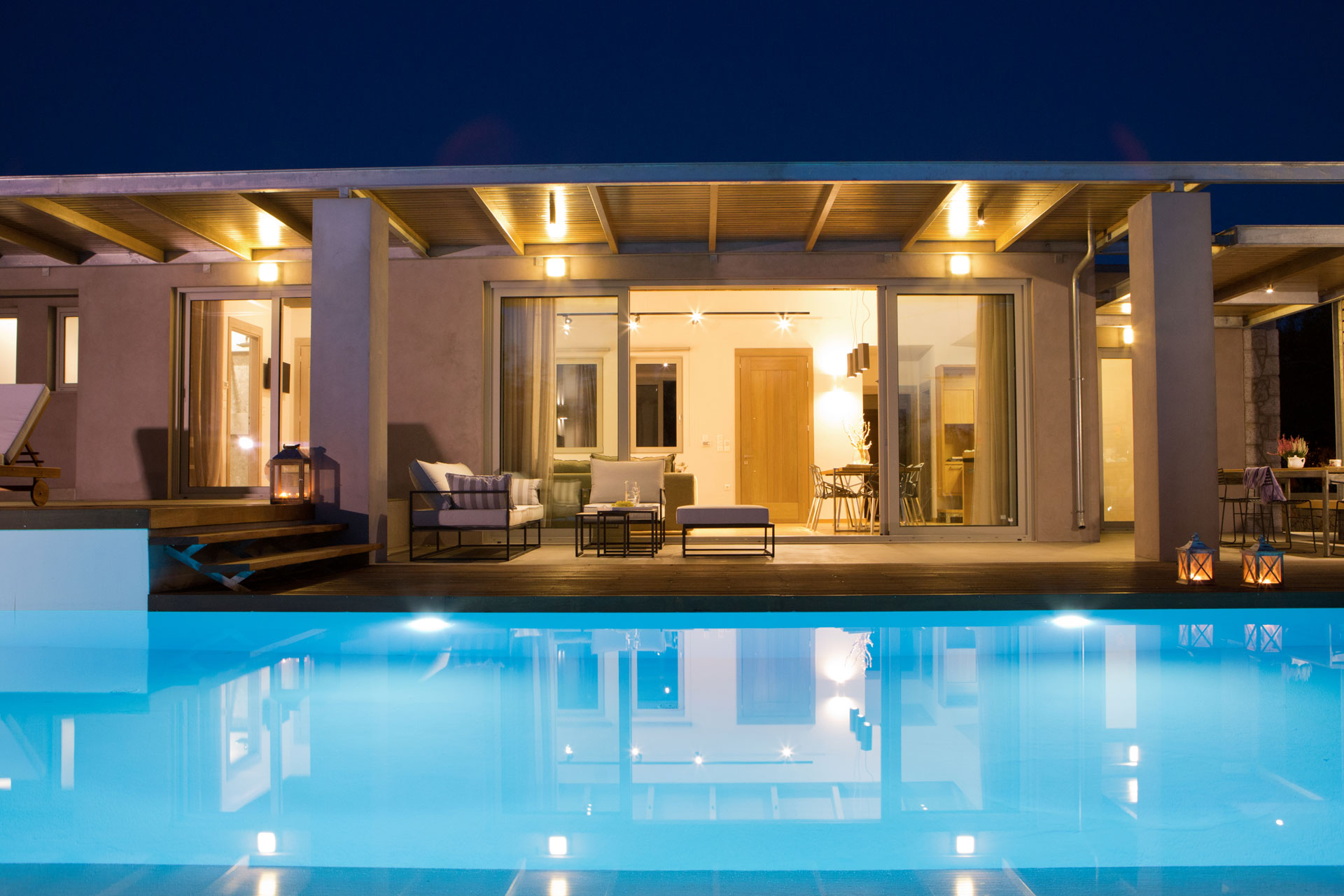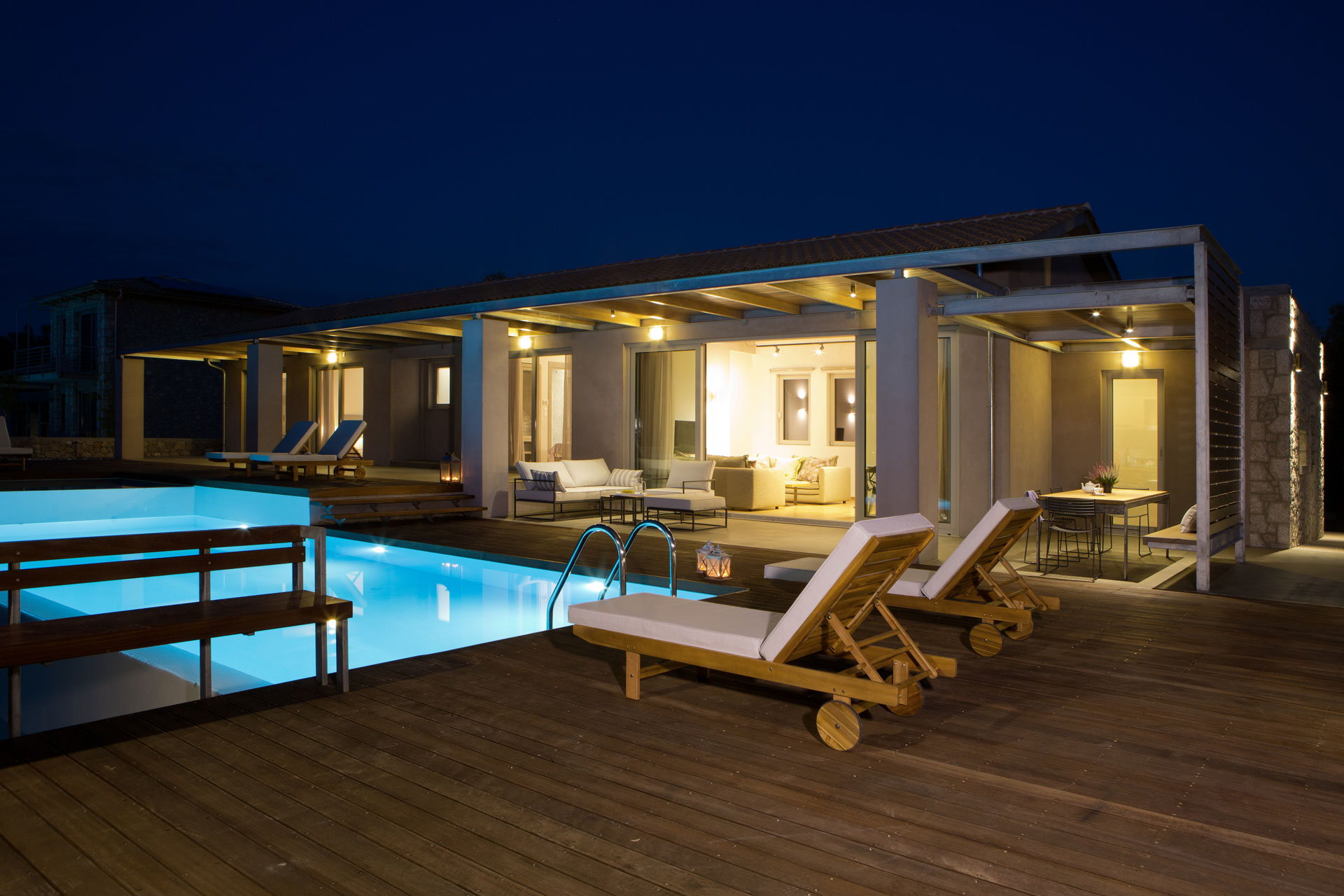 הוילות ממוקמות קרוב מאוד לחוף אגיוס יואניס (פרס הדגל הכחול) מצד אחד וקרוב מאוד לעיירה לפקאס Lefkas מצד שני עם שפע של מתקנים ושירותים. במרחק של 6 דקות הליכה או 700 מטר, ישנו החוף החולי של אגיוס יואניס, אחד החופים הטובים ביותר בלפקדה מסעדות על חוף הים, ברים ומתקני ספורט מים. עשר דקות הליכה תוכלו להיות בעיירה לפקאס עם חנויות, מוזיאונים, כנסיות ישנות, מסעדות, ברים וחיי לילה מעניינים.