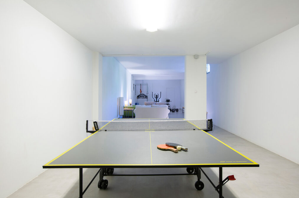גרם מדרגות פנימי מוביל למרתף גדול של 140 מ"ר עם חדר כושר קטן, סלון נעים וטניס שולחן. כל חדרי השינה משקיפים לבריכת האינסוף.