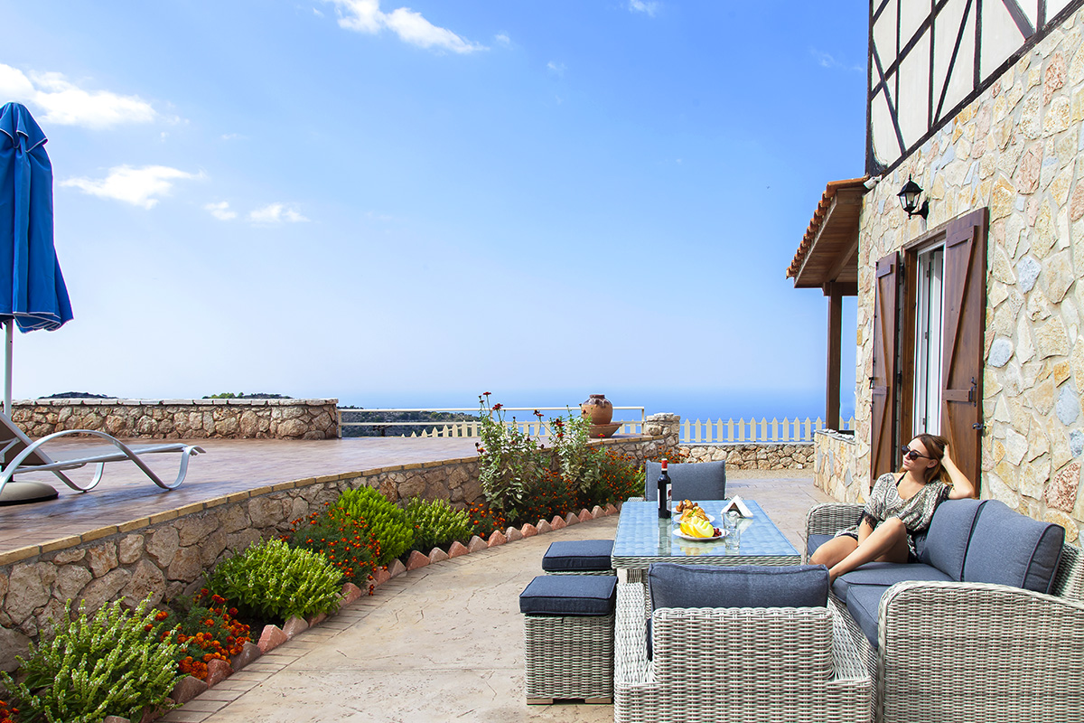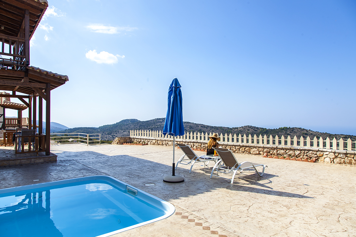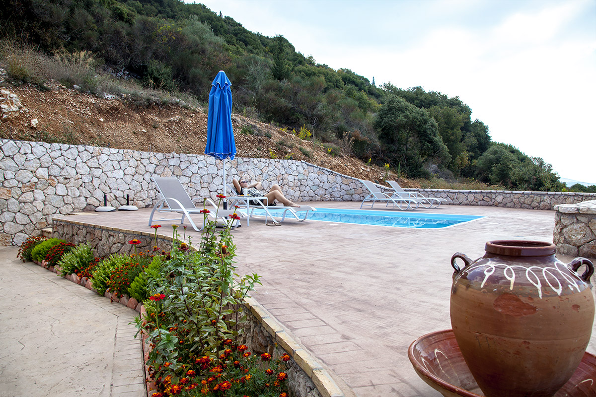 וילה דו קומתית יפיפיה בסגנון ספרדי, שוכנת בלב מטעי זיתים בכפר Athani הממוקם באזור המערבי של האי,  הוילה עם בריכה המשקיפה לחוף Egremni ובעלת נוף פנורמי מרהיב.