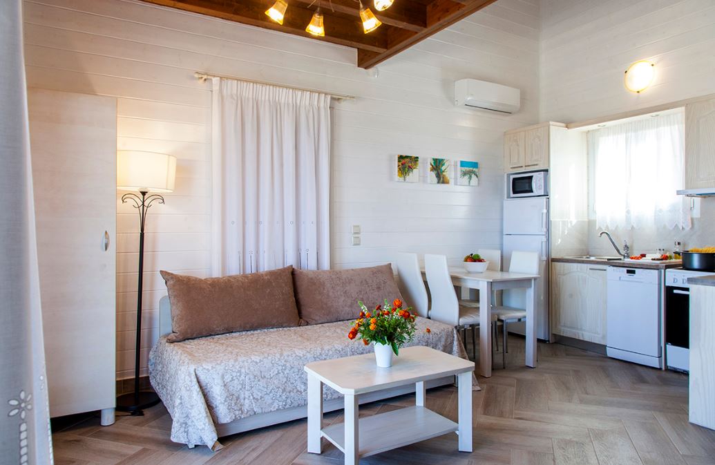 • סלון עם ונוף מדהים אל הים וספה הנפתחת למיטה.