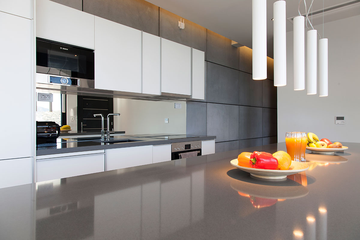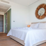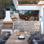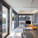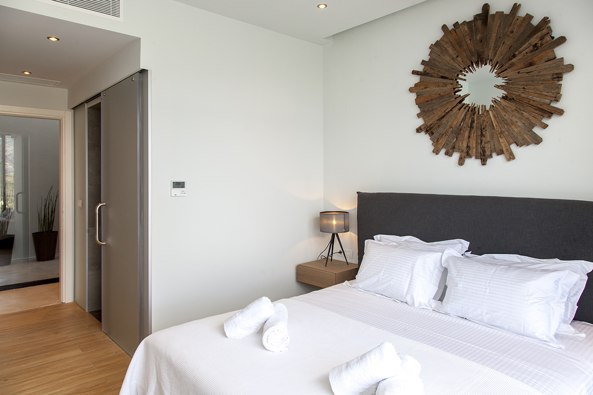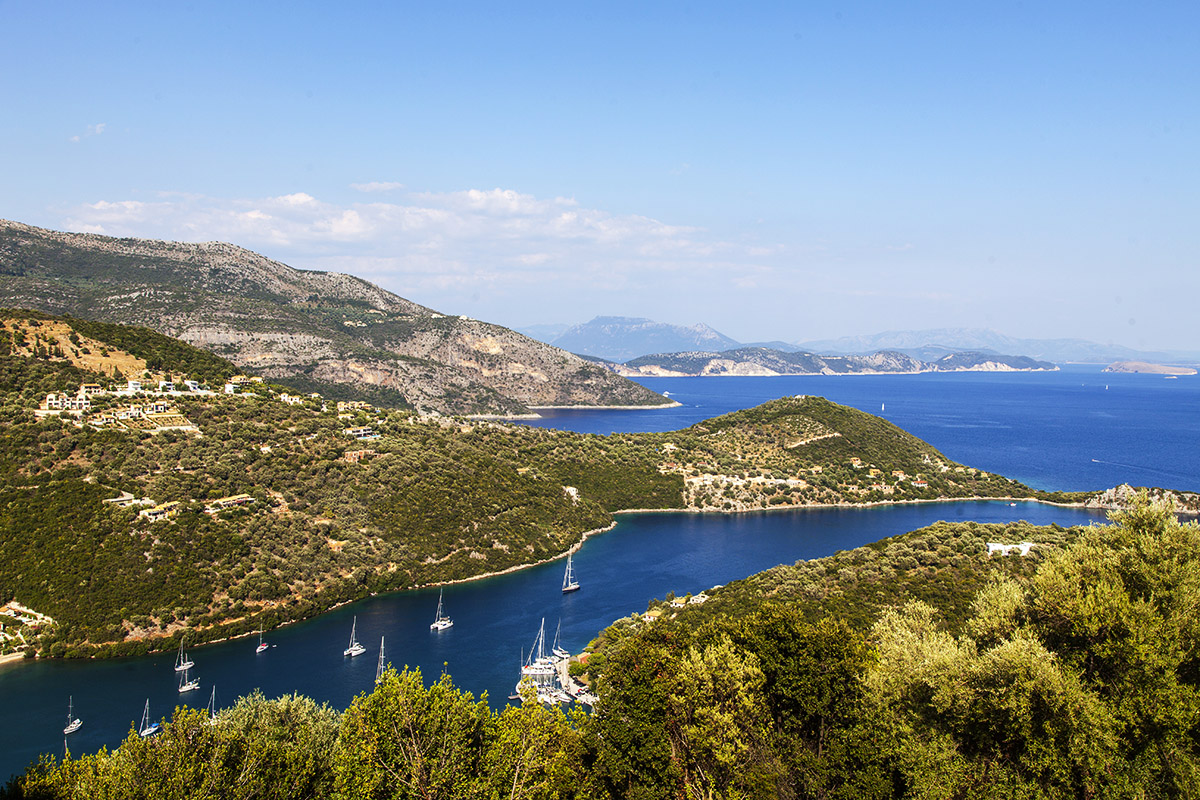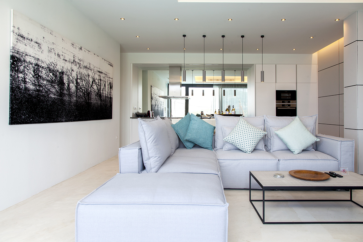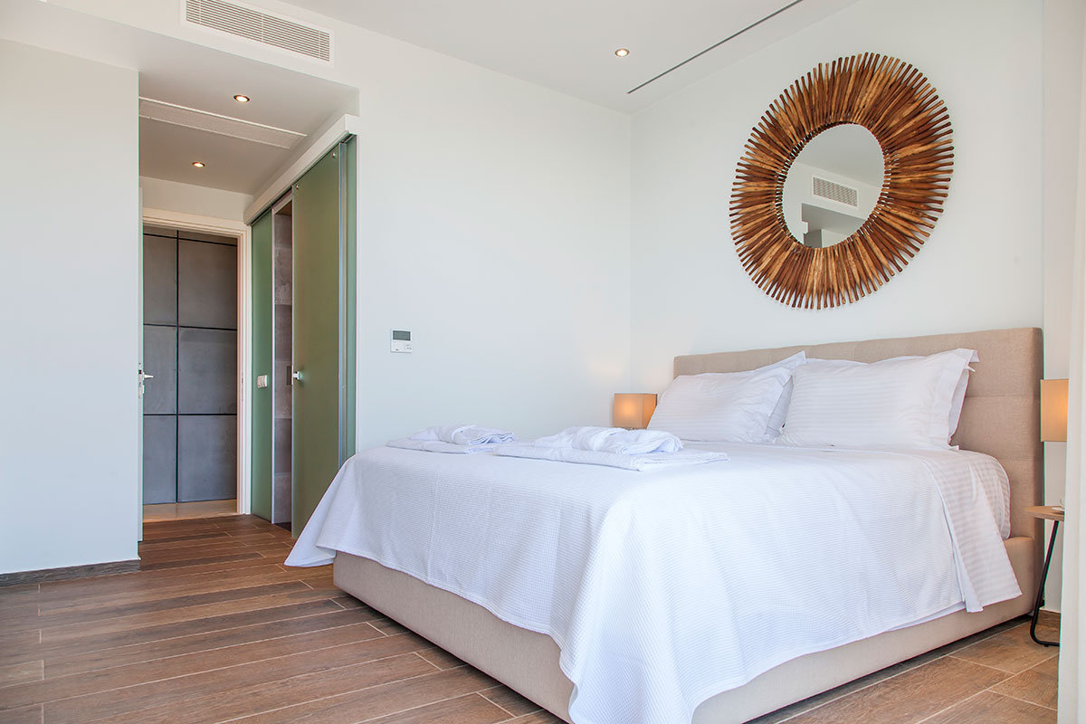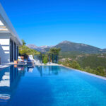 The front of the villa is made of high sliding glass doors that allow you to enjoy the wonderful panoramic sea view over the bay, the surrounding mountains and the Ionian Sea.