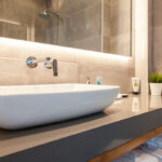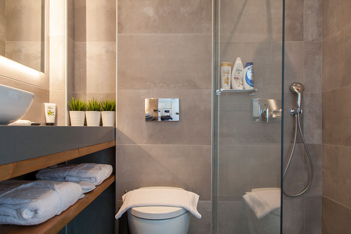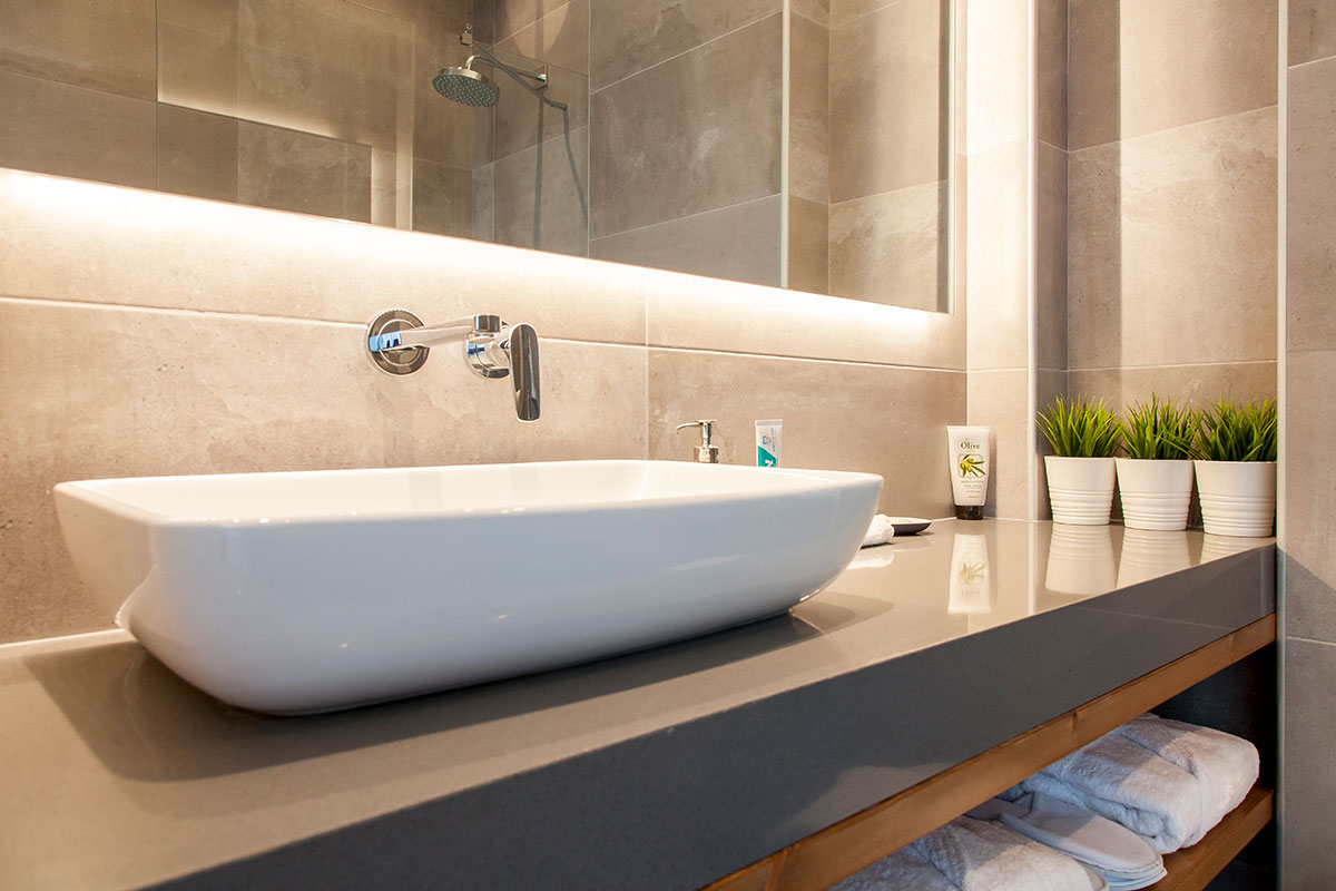 Along the corridor are three double bedrooms, two with a double bed and one with two single beds that also become a double bed. Each bedroom has a luxurious en-suite bathroom that provides extra privacy between guests.
