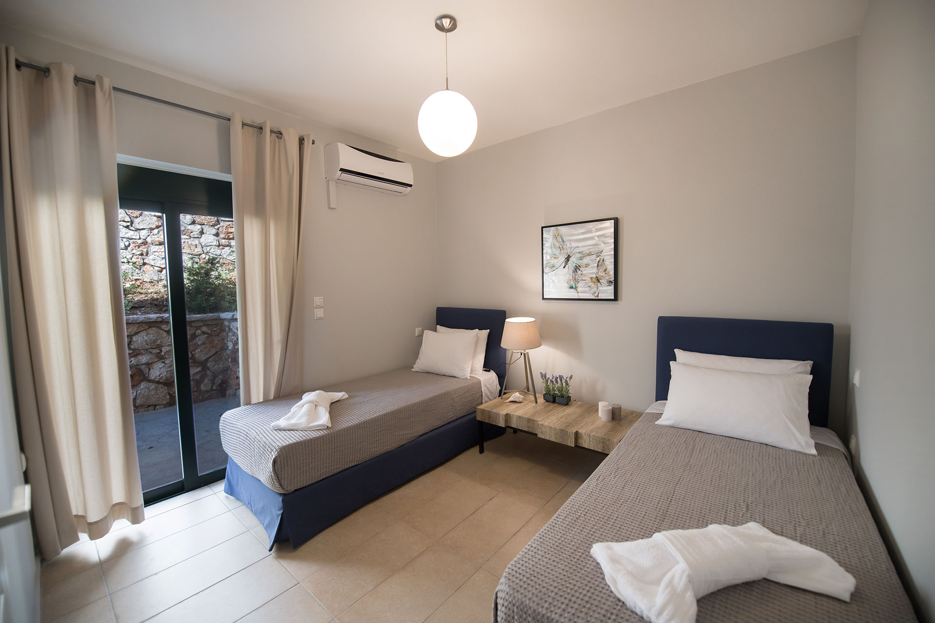 כל וילה כוללת 3 חדרי שינה מעוצבים, עם תחושה טבעית בכל הווילה, חדרי השינה מורכבים ממיטת קינג סייז, מיטה זוגית ושתי מיטות טווין בכל חדר בהתאמה. לשניים מחדרים אלה יש גישה לחדרי רחצה צמודים, בנוסף לחדר רחצה ראשי, עם סך של 3 חדרי רחצה בווילה, שתי חדרי הרחצה הצמודים מספקים מקלחות מודרניות, כאשר חדר הרחצה המשותף מכיל אמבטיה.