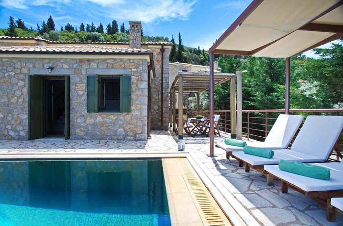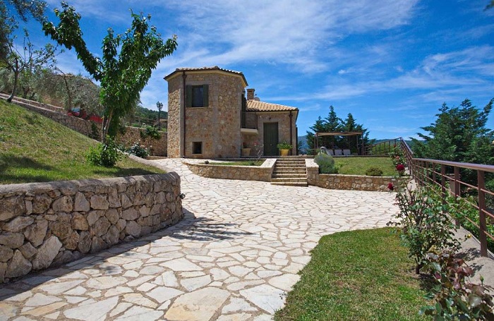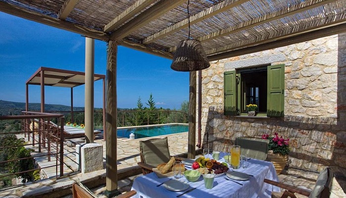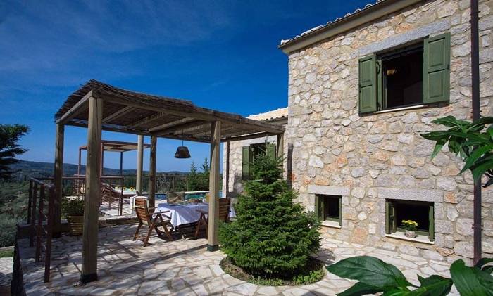 A complex of 6 stunning stone villas located on the slopes of a hill of olive trees.