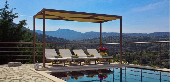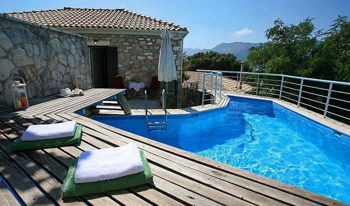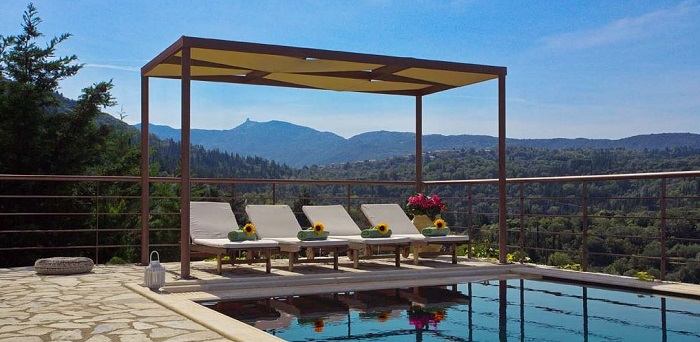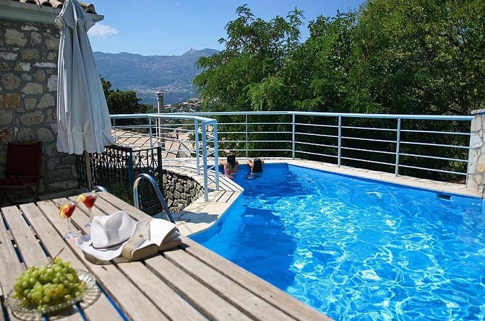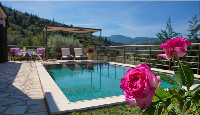 On one side is a view of the sea and on the other a view of the Lefkada Mountains