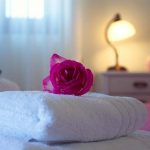 And another double bedroom hidden behind a curtain with a small attached bathroom.