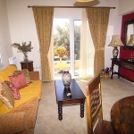 Each apartment has 2 bedrooms with double beds and 2 extra beds in the living room area. Also, a bathroom.
